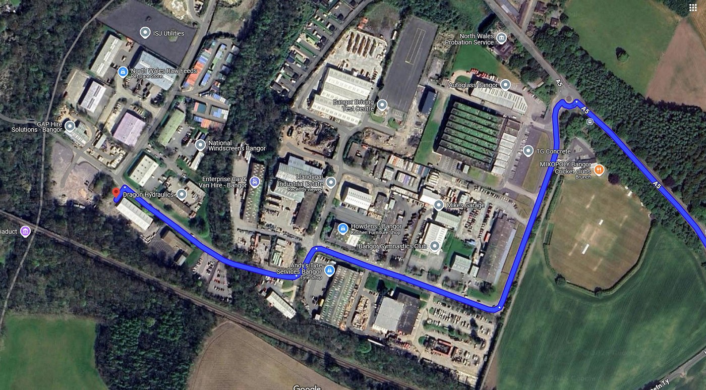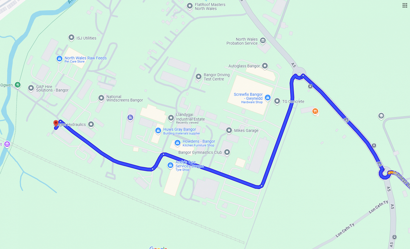 Atodir map o leoliad y ganolfan yn stad ddiwydiannol Llandygai, a gweler hefyd dolen Google Maps. Yn anffodus does dim cyfeiriad neu god post sy’n mynd a chi yno’n uniongyrchol, Gweler hefyd llun sy’n dangos y maes parcio.